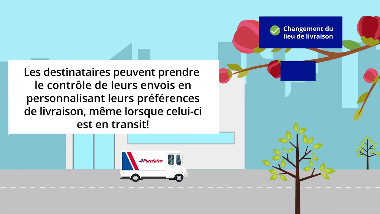 Les destinataires ont la possibilité de personnaliser leurs préférences de livraison (exemption de l’exigence de signature, ajout d’un code d’interphone), d’indiquer leur lieu de livraison préféré (p. ex. porte avant, garage) et de fournir des directives précises même lorsque leurs colis sont en route. Pour vous éviter tout tracas si vous ne prévoyez pas être à la maison lors de notre passage et que vous préférez récupérer votre envoi vous-même, choisissez la commodité de l’option À retenir pour cueillette (ÀRPC) à l’un des emplacements de Purolator. Vous aurez alors cinq jours ouvrables pour venir chercher votre colis.